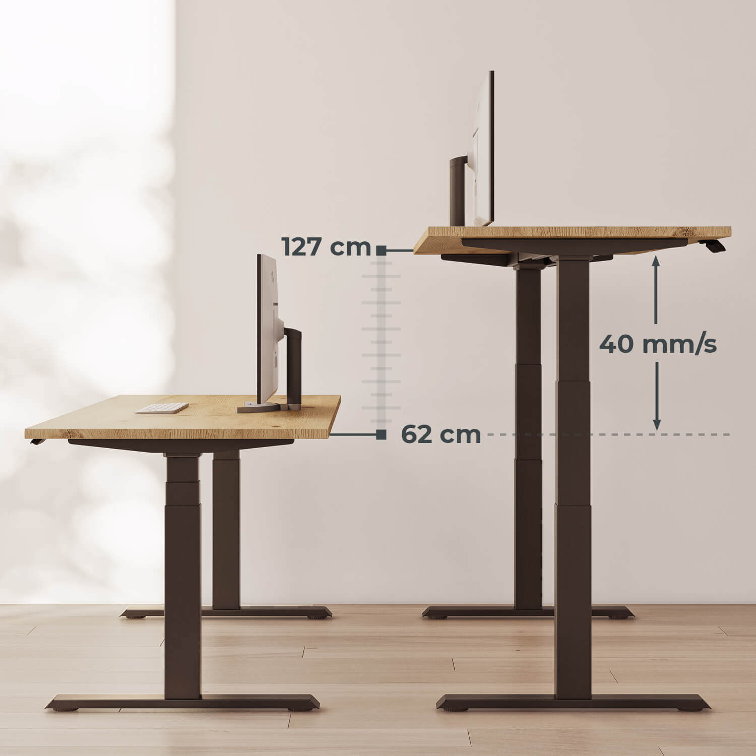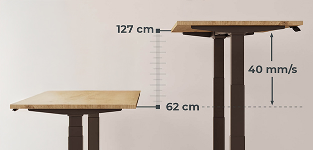 Höhenbereiche mit Tischplatte: 62 cm - 127 cm